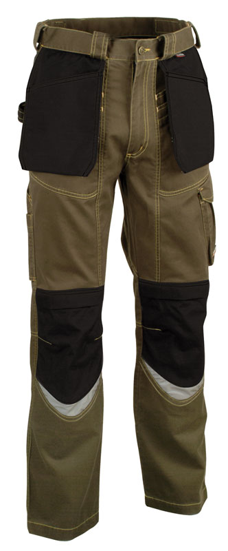 DESCRIPTION: 2 back pockets, one of them with flap, 4 wide front pockets, adjustable waist, hammer loop, knee and leg ergonomic design, nylon adjustable kneepad pockets, nylon external nail pockets, reflex inserts, reinforced crotch, rule pocket, side pocket, YKK® zip