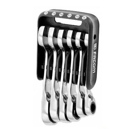 The Facom makes this Set of 6 short ratcheting combination spanners in pocket cases 8 to 14 mm. The productivity and safety – easy to organise, easy to spot, always with you.